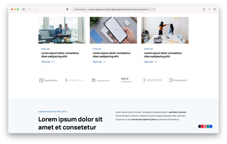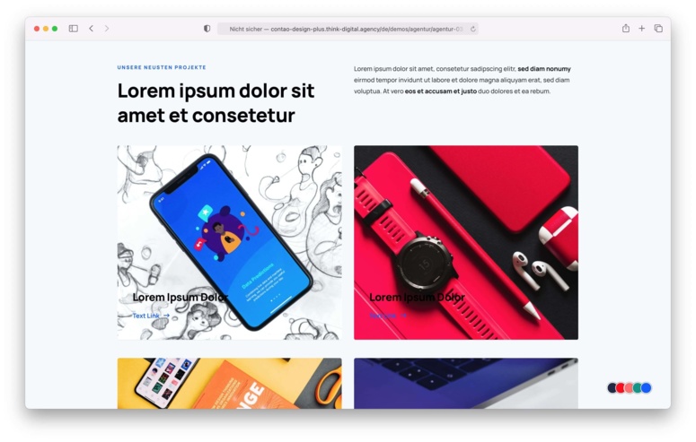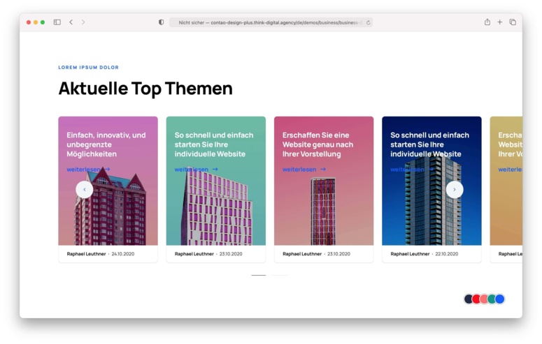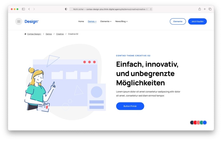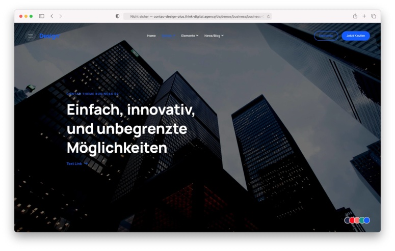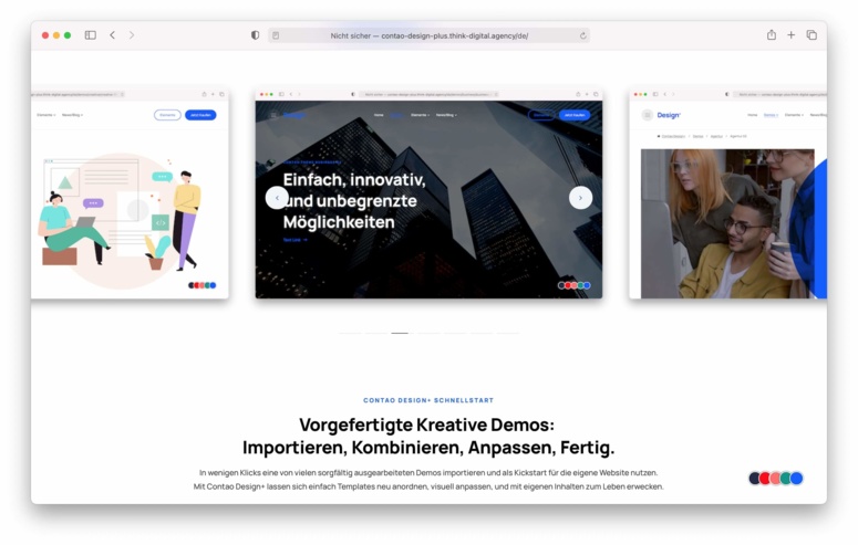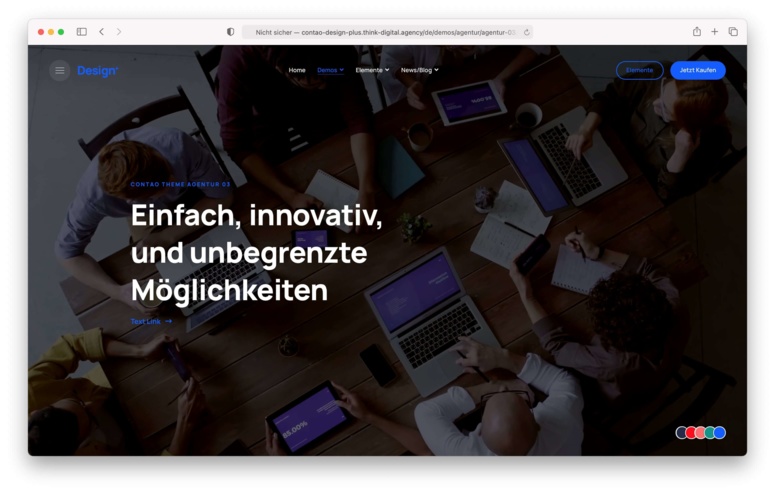 Mit Contao als intuitiver Basis ermöglicht das Theme verschiedenste Anforderungen mit Leichtigkeit und ohne Programmierkenntnisse umzusetzen. Aus einem Set von über 100 aufeinander abgestimmten Elementen können innovative Onepager oder umfangreiche Business Websites im Handumdrehen erstellt werden. Hunderte Kunden haben Think Digital bereits erfolgreich im Einsatz. Nutzen auch Sie jetzt die Vorteile von Think Digital.